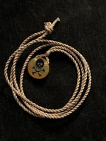 This fun little piece is carved from Baltic Amber and features a Skull and cross bones in black on the yellow Background.