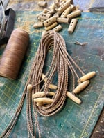 hung on a hand woven, tan Rope with Boxwood toggle fastener.