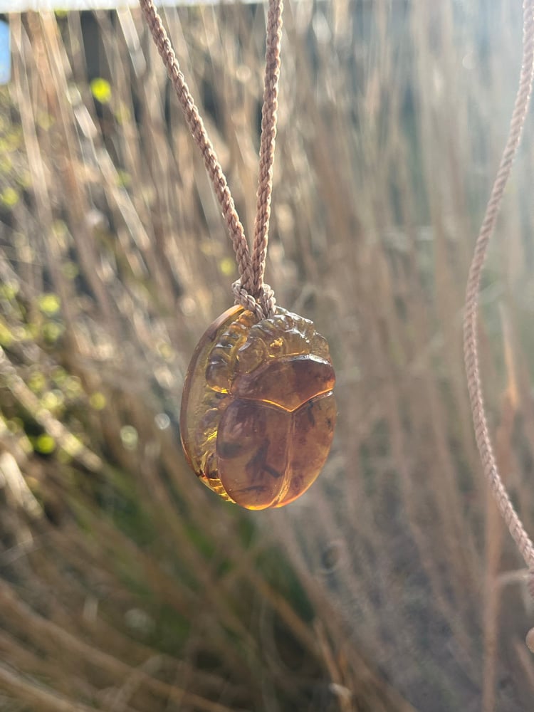 This piece of Baltic Amber has some delicious red and dark orange tones so I chose to carve this piece in to a Scarab beetle. For thousands of years the humble dung beetle has been revered as a protective symbol. Worn in ancient Egypt by all sort of people from kings to workers, these little symbolic bugs represented ever lasting life and safe passage between this life and the next.