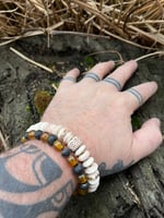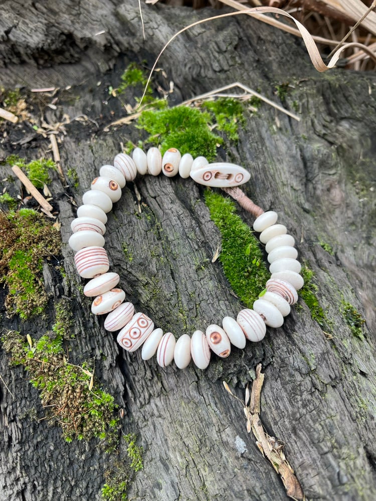 An elegant set of Ox bone beads all hand carved and roped together on this 9 inch strand that will fit 6.5 to 7.5 inch wrists comfortably. I can adjust prior to shipping for other measurements too.